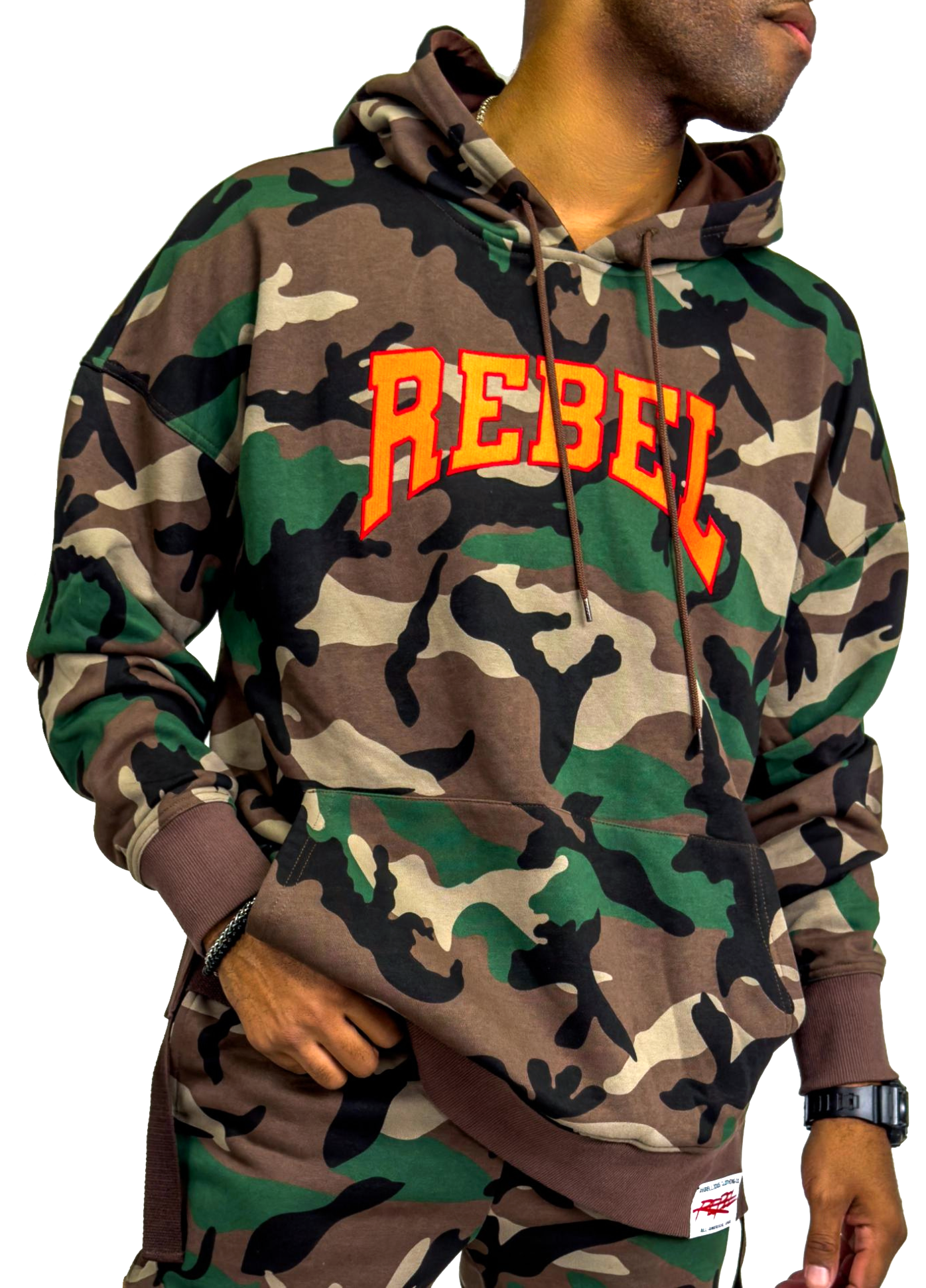 Elevate your street style with the Rebellious™️ Clothing Co. Men Camouflage Rebel Hoodie. A bold and edgy addition to your wardrobe. Crafted from high-quality french terry cotton and embroidered lettering, this hoodie features a modern camouflage print that exudes confidence and attitude. Perfect for those who dare to stand out from the crowd, this hoodie is a must-have for any fashion-forward man looking to make a statement.