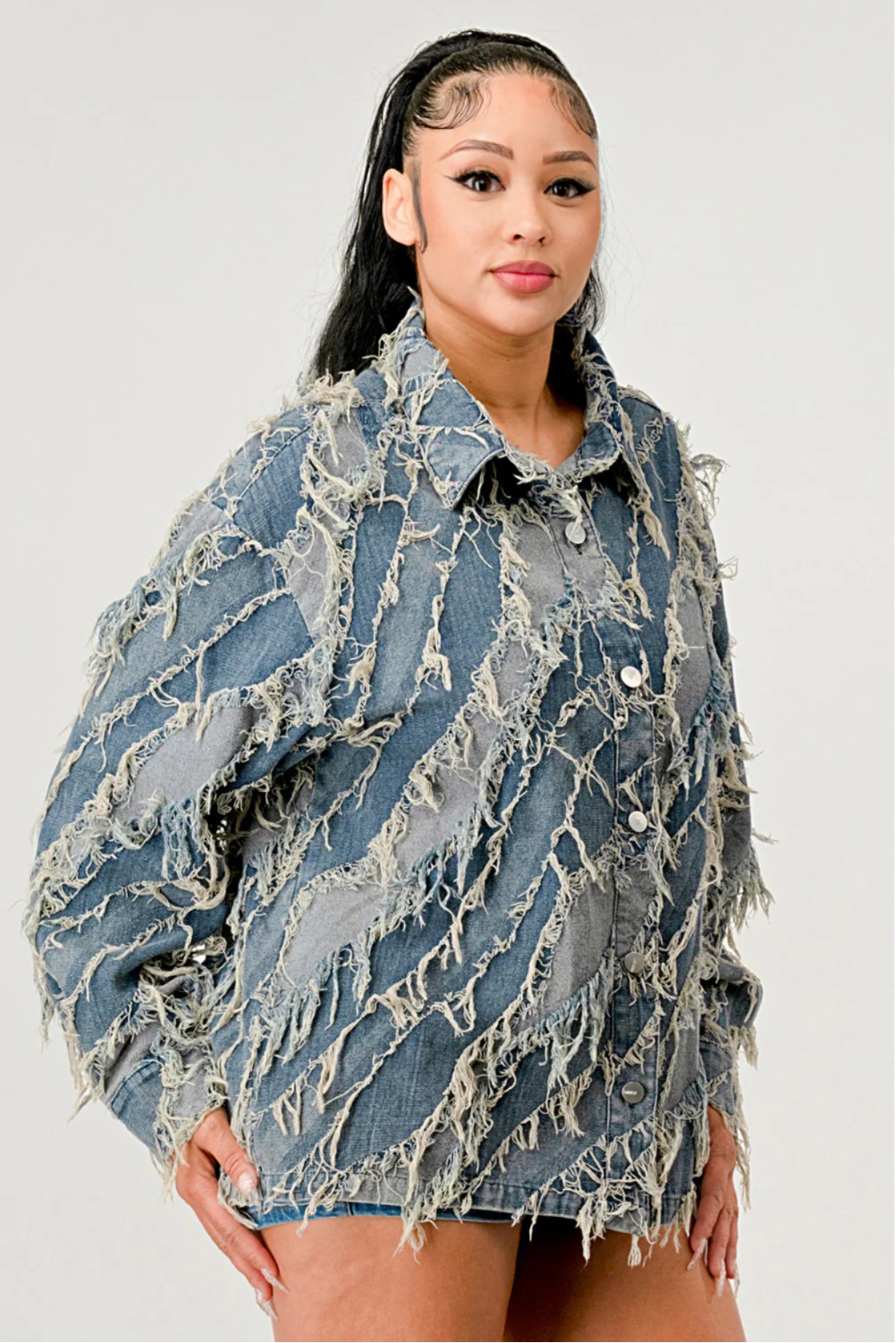 Our Be Creative Denim Jacket is crafted with premium denim for a vintage look and long-lasting wear. Featuring all-over distressing for a unique appearance, and a button closure for a secure fit, this statement piece will add a stylish edge to any wardrobe.